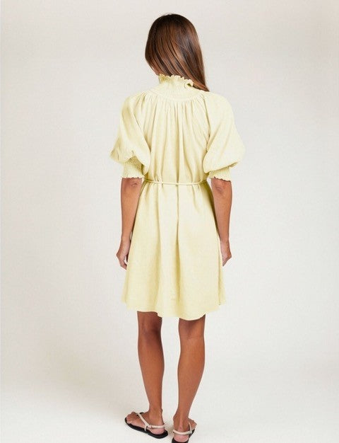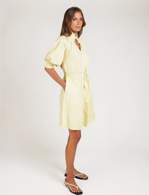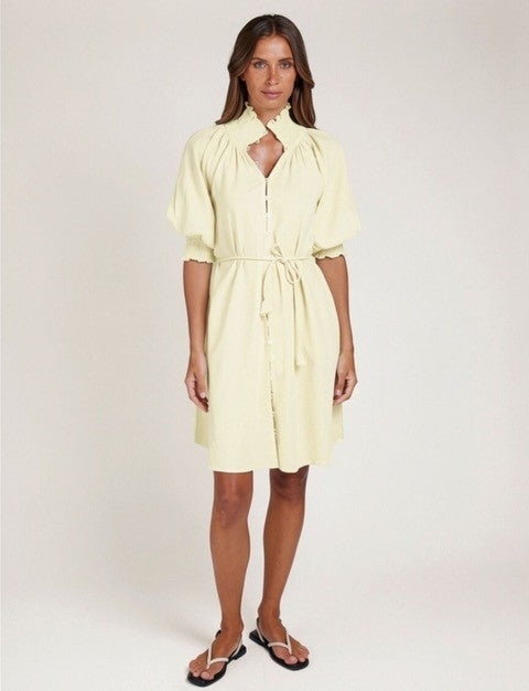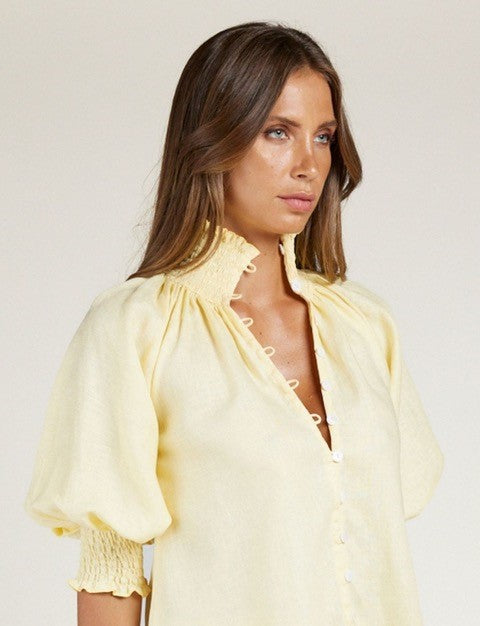 Our new SHIRRED DRESS is a modern design yet timeless shape features shirred neckline & cuffs sleeves offering a unique & elevated shape. This stylish piece is complete with natural shell buttons, you will be wearing it all season long.
