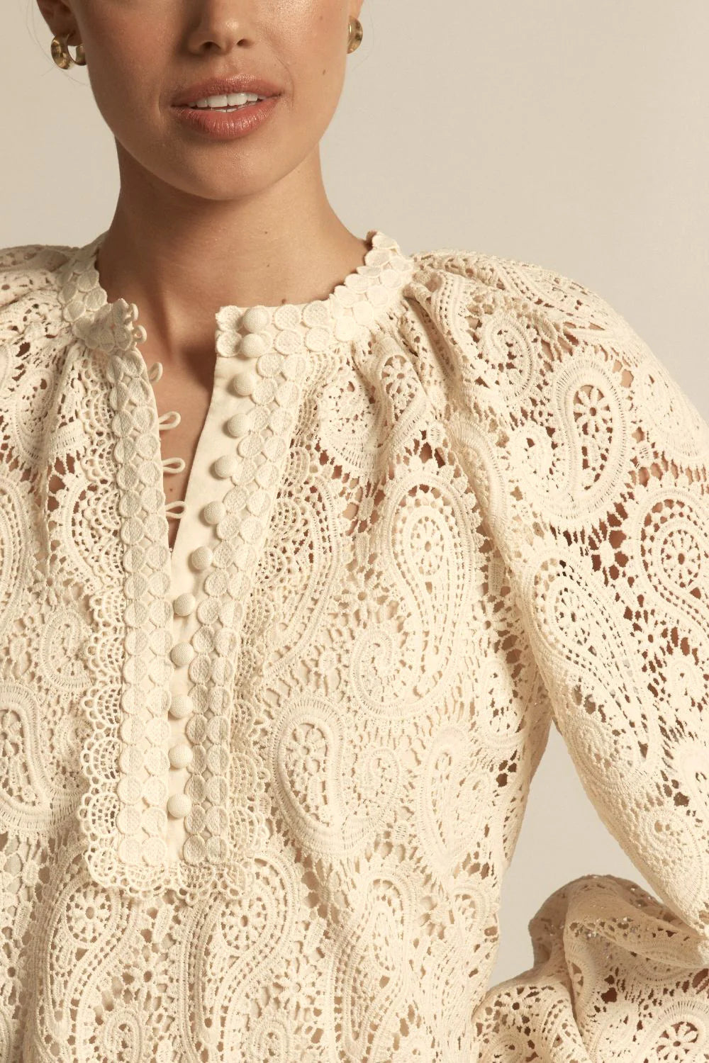 - crafted in a 70s-inspired paisley poly-lace