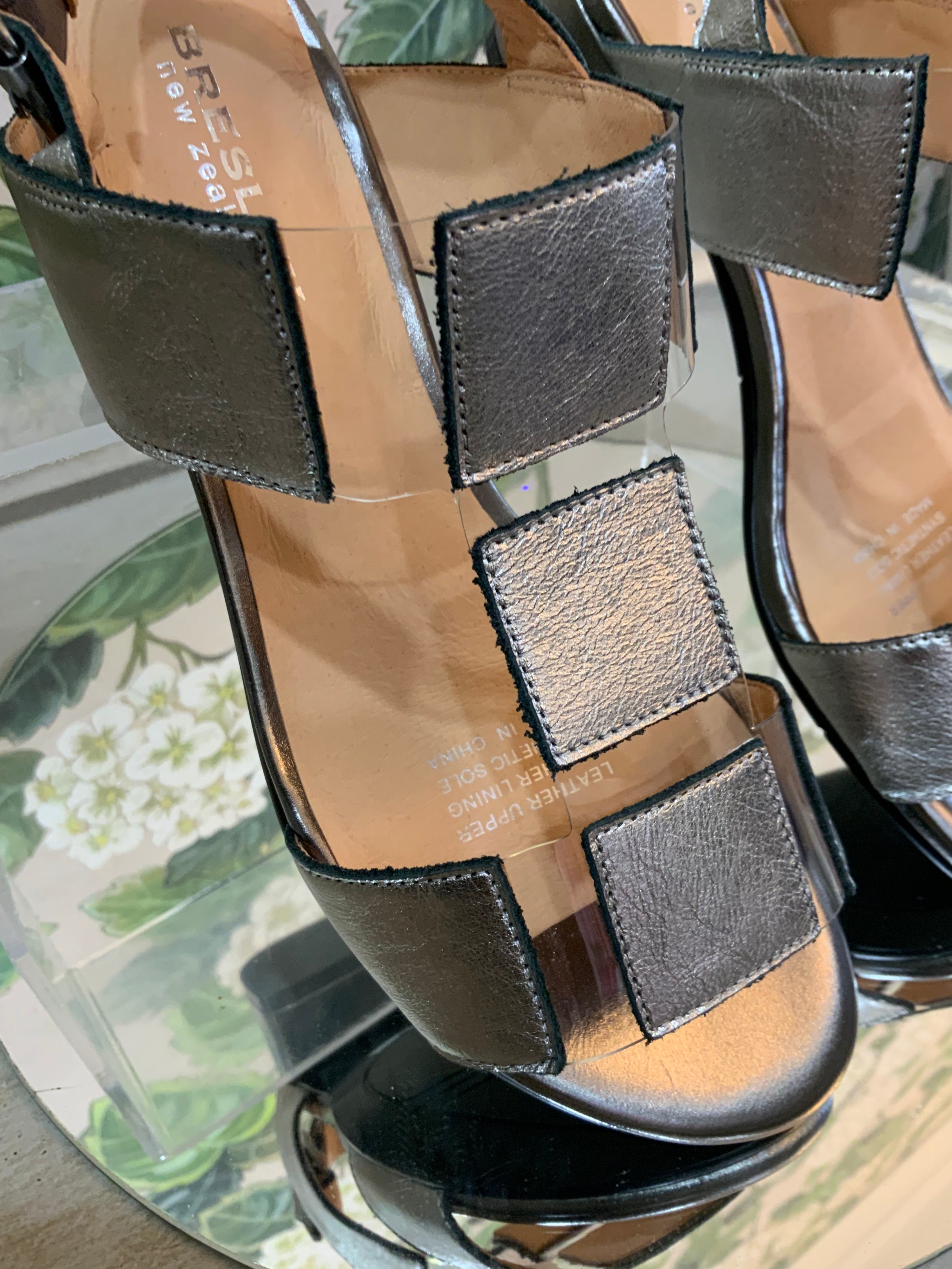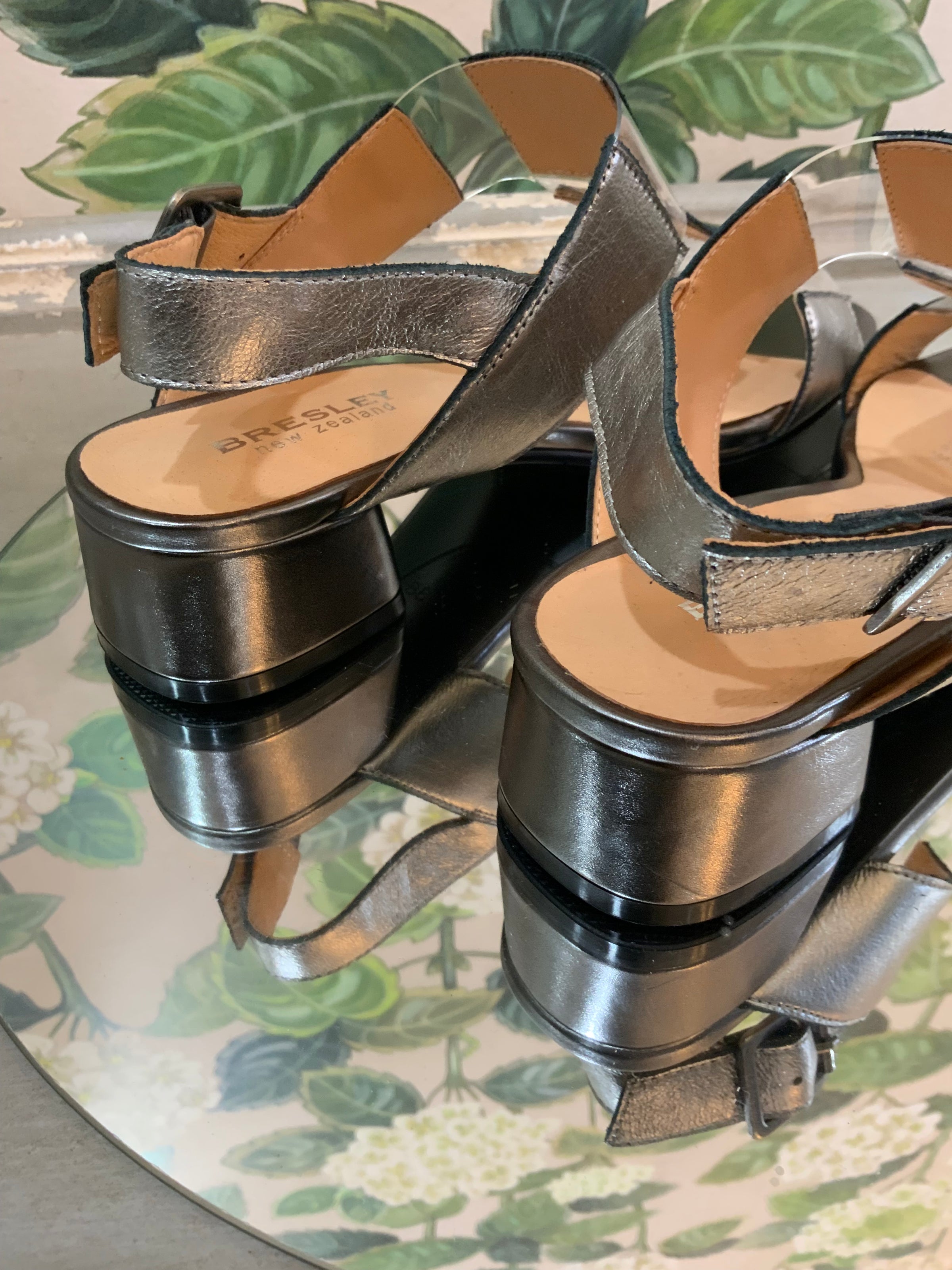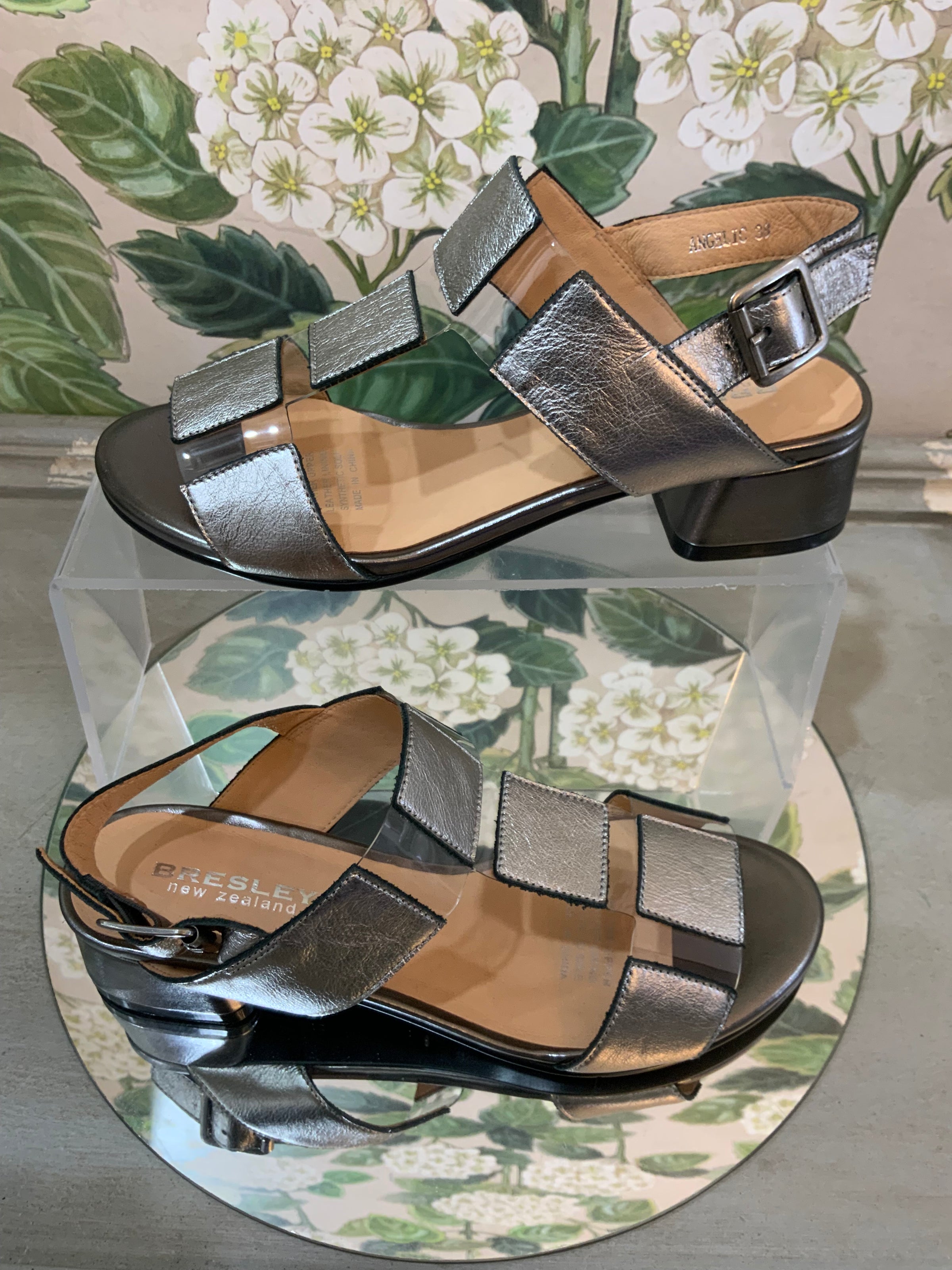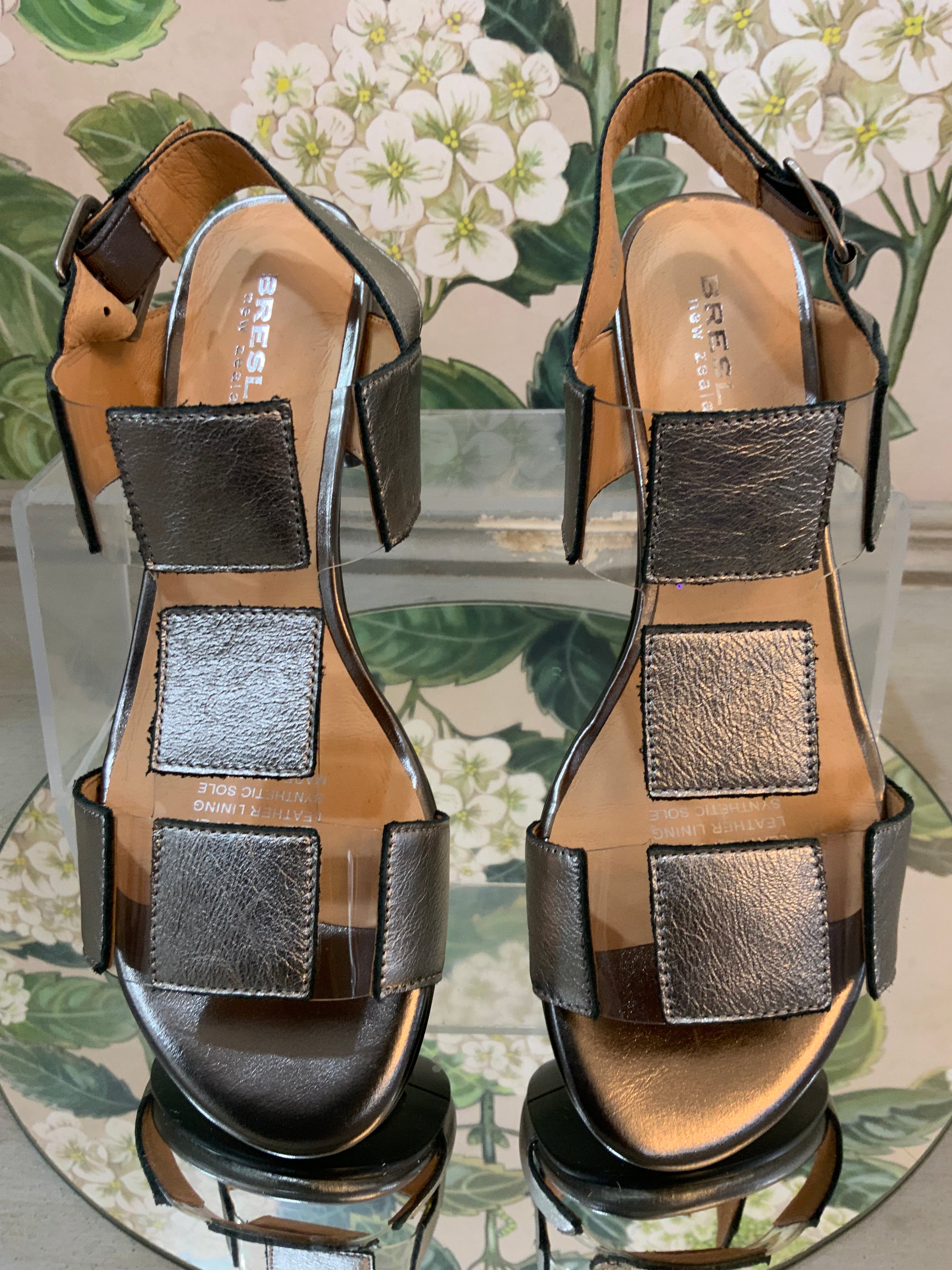Step into sleek sophistication with these metallic block-heel sandals. Designed with wide crossover straps and a supportive buckle fastening, they blend style with comfort for effortless day-to-night wear. The low block heel adds a touch of height without compromising stability, while the metallic finish brings a modern edge that pairs perfectly with both casual and dressy looks.