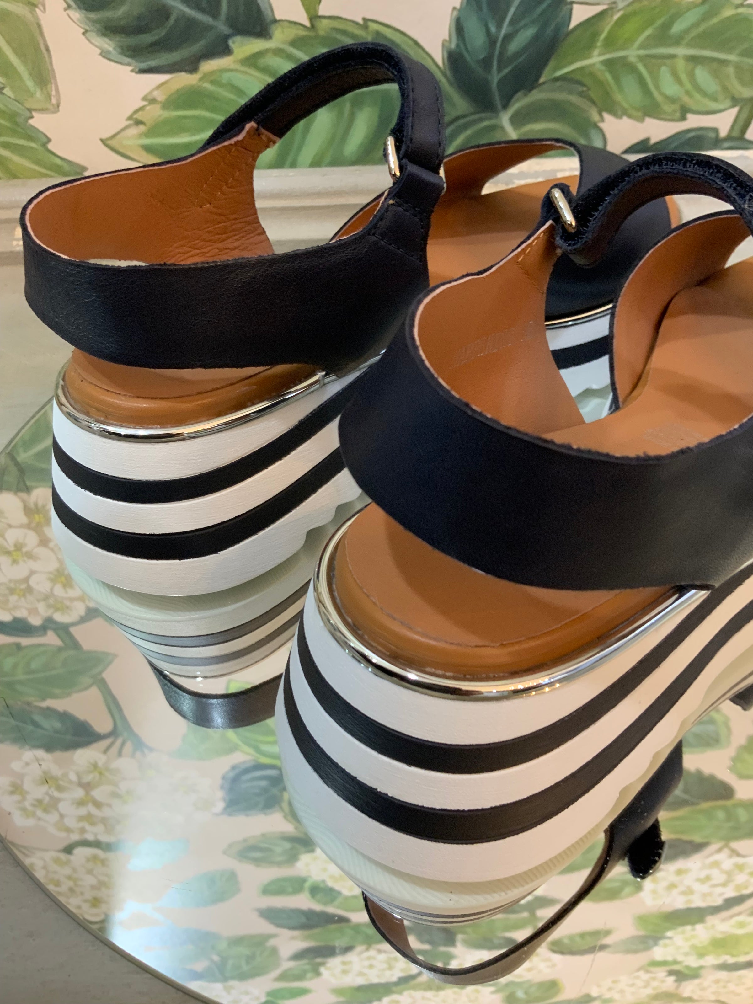 Striped platform sole with metallic trim detail for a bold, contemporary edge