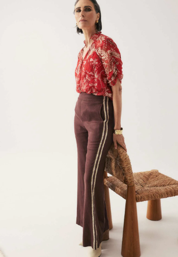Finished with a clean waistband and softly flared leg, the Liora Pant transitions effortlessly from polished daytime styling to elevated evening wear. Pair it with a printed blouse or a tailored jacket for a confident, contemporary look that feels timeless yet distinctive.