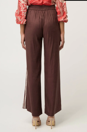 Elevate your everyday tailoring with the Liora Linen Viscose Stretch Rope Pant in Rustic Twine, a refined blend of relaxed sophistication and modern edge. Designed to elongate the silhouette, this high-waisted pant is crafted from a breathable linen-viscose stretch fabric that offers both structure and comfort. The standout contrast rope trim running down the side seam adds a subtle artisanal detail, creating a flattering, lengthening effect with a touch of bohemian charm.