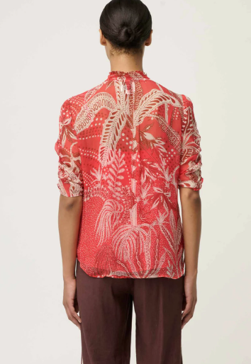 Lunette Viscose Chiffon Blouse in Crimson Palms