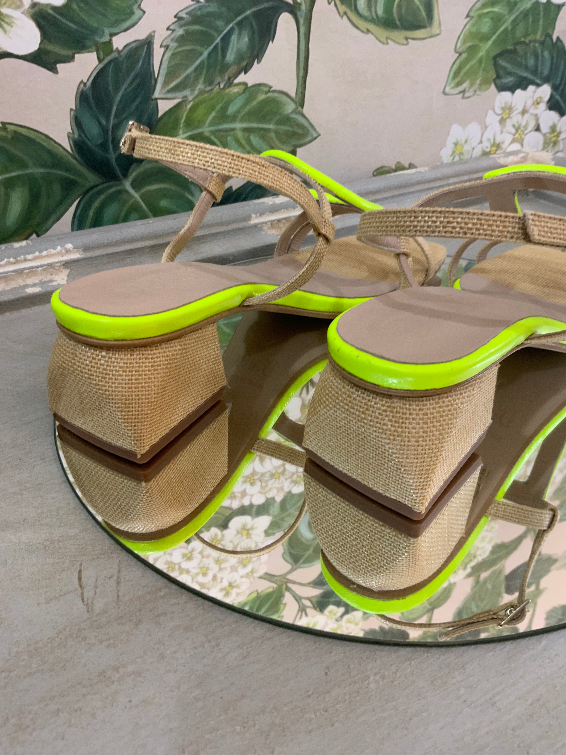 Step into sunny vibes with the 7454-Amarillo sandal, blending natural raffia and smooth leather for a breezy feel. The playful amarillo square and circle details add a pop of cheerful style, making every step a fun statement. Handmade in Spain, this sandal combines comfort with a splash of bold design to brighten your day.